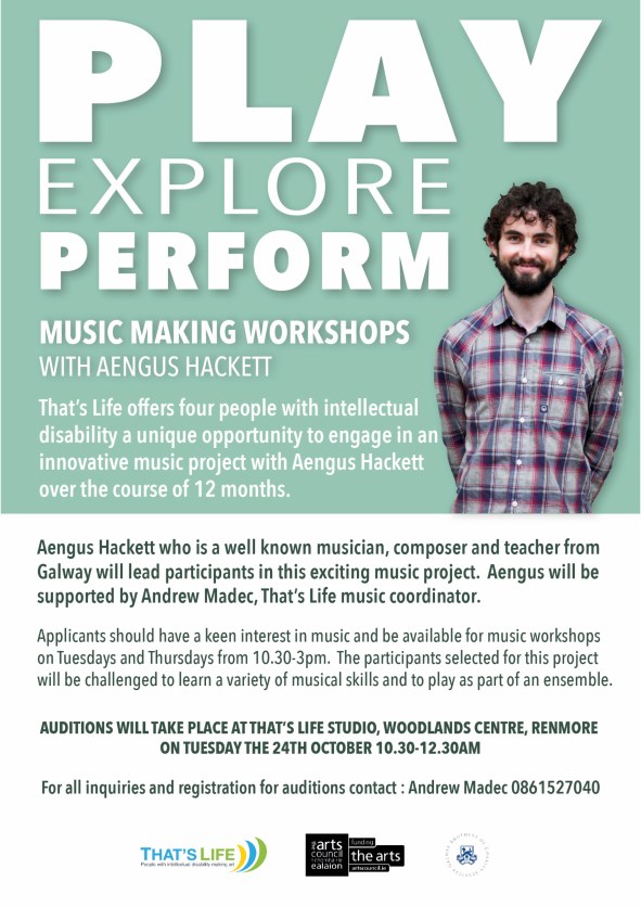 Applicants should have a keen interest in music and be available for workshops in Galway City on